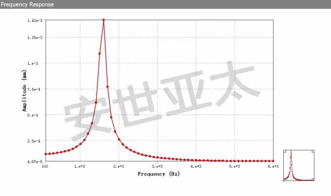 结构在0~6000Hz的频率范围内,位移-频率关系曲线如下图所示。